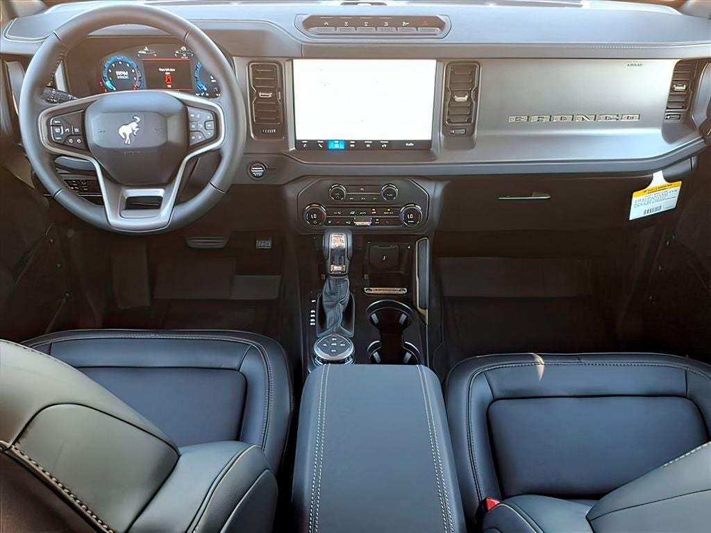 Black Appearance Package (Black Molded-In-Color Door Handles, Black Molded-In-Color Fender Flares, Black Molded-In-Color Sideview Mirror Caps, and Black-Painted Molded-In-Color Grille), Equipment Group 332A Mid Package (2-Door Intelligent Access w/Lock/Unlock, Ambient Footwell Lighting, Connected Navigation, Dr & Pass Illuminated Sliding Visor Vanity Mirrors, Dual Smart Charging USB Ports, Dual-Zone Electronic Automatic Temperature Control, Front Row Heated Seats, Power Outlet - Back Side of Center Floor Console, and Rear Parking Sensors), 4-Wheel Disc Brakes, 4.7 Axle Ratio, 7 Speakers, ABS brakes, Air Conditioning, Alloy wheels, AM/FM radio: SiriusXM with 360L, AM/FM Stereo, Auto High-Beam Headlamps, Auto High-beam Headlights, Auto-dimming Rear-View mirror, BLIS Blind Spot Information System, Brake assist, Compass, Delay-off headlights, Driver door bin, Driver vanity mirror, Dual front impact airbags, Dual front side impact airbags, Electronic Stability Control, Emergency communication system: 911 Assist, Exterior Parking Camera Rear, Front & Rear Floor Liners w/o Carpet Floor Mats, Front anti-roll bar, Front Bucket Seats, Front Center Armrest, Front fog lights, Front License Plate Bracket, Front reading lights, Front wheel independent suspension, Fully automatic headlights, Hard Top Sound Deadening Headliner, Heated door mirrors, Heated front seats, Heated steering wheel, Illuminated entry, Integrated roll-over protection, Lane-Keeping System, Leather Shift Knob, Low tire pressure warning, Marine Grade Vinyl Heated Bucket Seats, Occupant sensing airbag, Outside temperature display, Overhead airbag, Overhead console, Panic alarm, Passenger door bin, Passenger vanity mirror, Power door mirrors, Power steering, Power windows, Pre-Collision Assist w/Automatic Emergency Braking, Radio data system, Raptor-Style Running Board, Rear-View Camera, Rear-Window Defroster & Washer, Remote keyless entry, Security system, Shadow Black Painted Hard Top, SiriusXM w/360L, Speed control, Split folding rear seat, Steering wheel mounted audio controls, SYNC 4, Tachometer, Telescoping steering wheel, Tilt steering wheel, Traction control, Trip computer, Variably intermittent wipers, Voltmeter, and Wheels: 17 Carbonized Gray-Painted Aluminum.