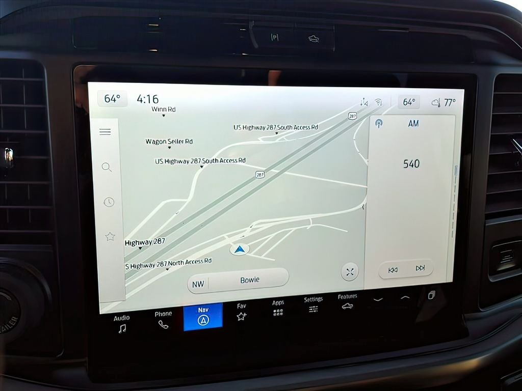 Bed Utility Package (4 Pickup Box Tie-Down Plates, LED Box Lighting, and Power Tailgate), Equipment Group 402A High (2nd Row Heated Seats, Ambient Lighting, Auto-Dimming Rear-View Mirror, Front Axle w/Torsen Differential, Heads-Up Display, Heated Steering Wheel, LED Taillamps, Media Bin Door, Modular Front Bumper & Carbon Black Rear Bumper, Power Glass Heated Sideview Mirrors, Power-Adjustable Pedals w/Memory, Premium Wrapped Steering Wheel, Radio: B&O Unleashed Sound System by Bang & Olufsen, Rain-Sensing Wipers, Two-Speed Automatic AWD w/Mechanical Locking 4WD, Unique Tremor Leather-Trimmed Bucket Seats, and Universal Garage Door Opener), GVWR: 7,100 lbs Payload Package, Mobile Office Package (Console Worksurface, Partitioned Lockable Rear Storage, and Wireless Charging), Tow/Haul Package (Integrated Trailer Brake Controller), 4WD, 4-Wheel Disc Brakes, 8 Speakers, ABS brakes, Adjustable pedals, Air Conditioning, Alloy wheels, AM/FM radio: SiriusXM with 360L, Auto High-beam Headlights, Auto-dimming door mirrors, Auto-dimming Rear-View mirror, Automatic temperature control, Brake assist, Bumpers: body-color, Compass, Delay-off headlights, Driver door bin, Driver vanity mirror, Dual front impact airbags, Dual front side impact airbags, Electronic Locking w/3.73 Axle Ratio, Electronic Stability Control, Emergency communication system: SYNC 4 911 Assist, Front anti-roll bar, Front Bucket Seats, Front Center Armrest, Front dual zone A/C, Front fog lights, Front reading lights, Front wheel independent suspension, Fully automatic headlights, Heated door mirrors, Heated front seats, Illuminated entry, Internet access capable: FordPass Connect 5G, Low tire pressure warning, Navigation system: Connected Navigation, Occupant sensing airbag, Outside temperature display, Overhead airbag, Overhead console, Panic alarm, Passenger door bin, Passenger vanity mirror, Power door mirrors, Power driver seat, Power passenger seat, Power steering, Power windows, Radio data system, Radio: B&O Sound System by Bang & Olufsen, Rear reading lights, Rear step bumper, Rear window defroster, Remote keyless entry, Security system, Speed control, Split folding rear seat, Steering wheel mounted audio controls, SYNC 4 w/Enhanced Voice Recognition, Tachometer, Tailgate Step w/Tailgate Work Surface, Telescoping steering wheel, Tilt steering wheel, Traction control, Trip computer, Turn signal indicator mirrors, Unique Sport Cloth 40/Console/40 Power Front Seat, Variably intermittent wipers, Voltmeter, and Wheels: 18 Alloy w/Dark Matte Finish.