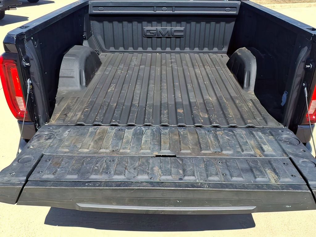 The Sierra 1500 SLT offers a commanding presence with its Titanium Rush Metallic Gray exterior, complemented by chrome accents and 20-inch polished aluminum wheels. Step inside and experience the refined comfort of the leather-appointed seats, complete with ventilation for the driver and front passenger.